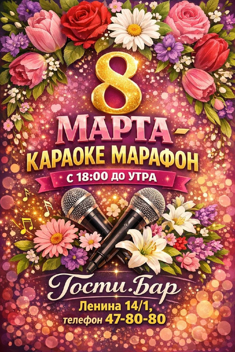 Приглашаем на праздничное караоке в честь 8 марта. Начнем в 18:00. Бронируйте столики и мягкие зоны. Начало: 08 марта 2026 18:00 Стоимость: Бесплатно Адрес: г Омск, ул Ленина, д 14 к 1 Организатор: https://vk.com/public131749131 Ждем милых дам и кавалеров на праздничное караоке 8 марта! Начинаем в 18:00! Бронируйте столики и мягкие зоны по телефону 47-80-80 Мы на Ленина 14/1, проход через арку с ул. Партизанская или ул. Ленина. #пение_караоке Узнать подробности, адрес или записаться на событие.