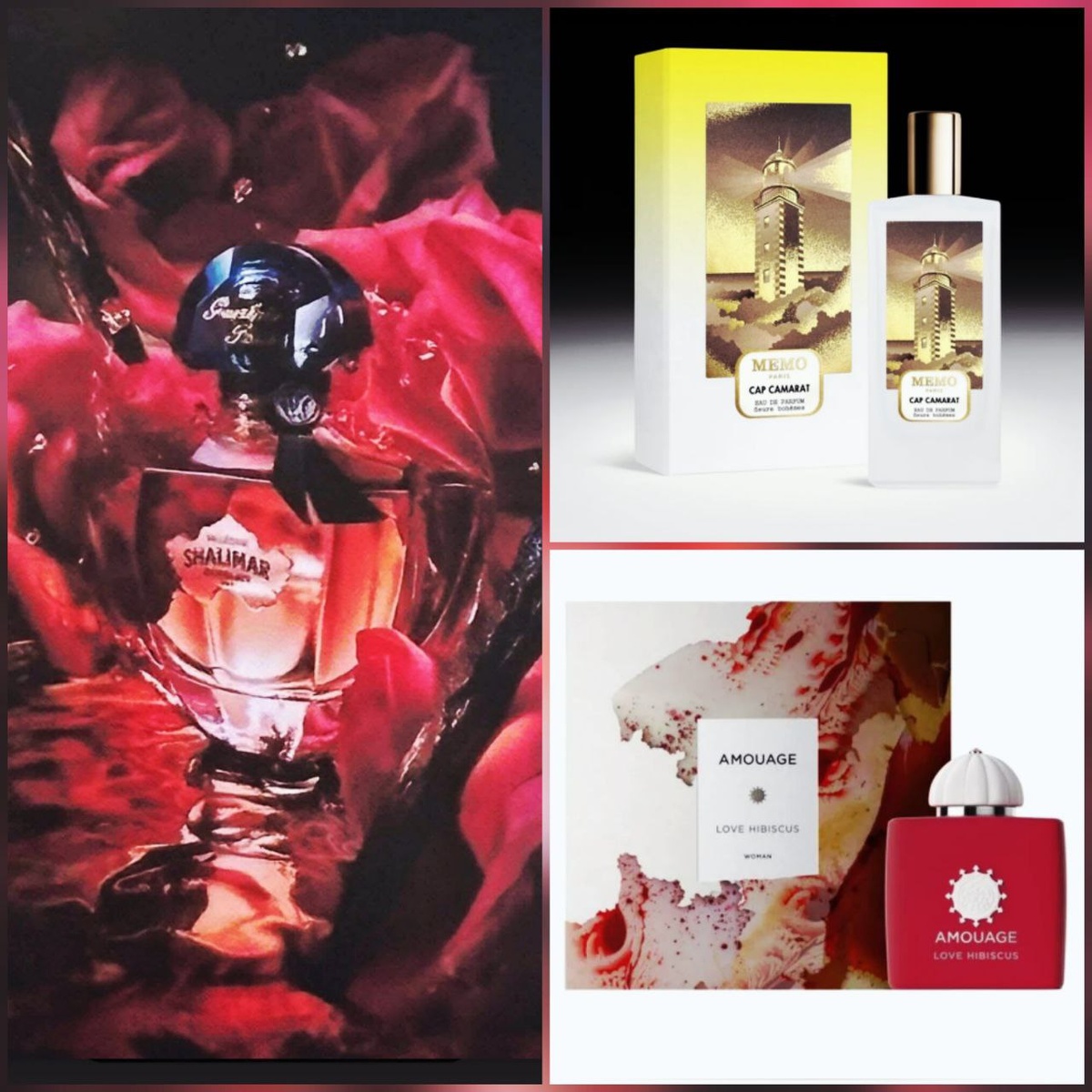 : Love Hibiscus Amouage (правда, пока эксклюзивно для Nordstrom, но наверняка выйдет на общемировой рынок) Бергамот, маракуйя, соленая карамель, гибискус, ирис, ладан, папирус, сандал, ваниль Cap Camarat Memo розовый перец, яблоко, иланг-иланг, жасмин, ваниль, сандаловое дерево, бензоин, амирис, пачули, лабданум И ... Shalimar Millesime Rose с розой. Шалимар ждете, да?😉