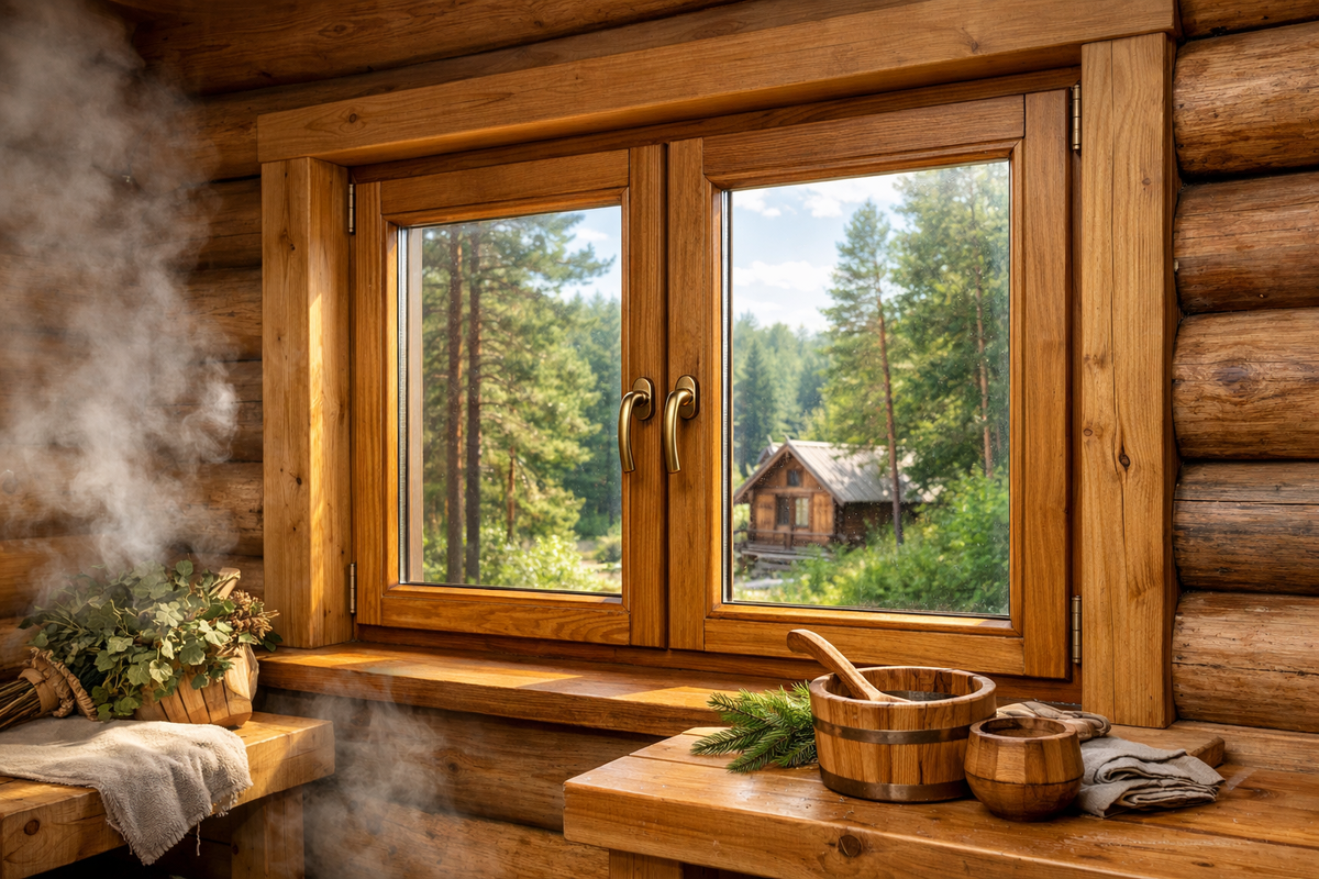 Выбор материала для окон в бане — задача непростая. Обычные