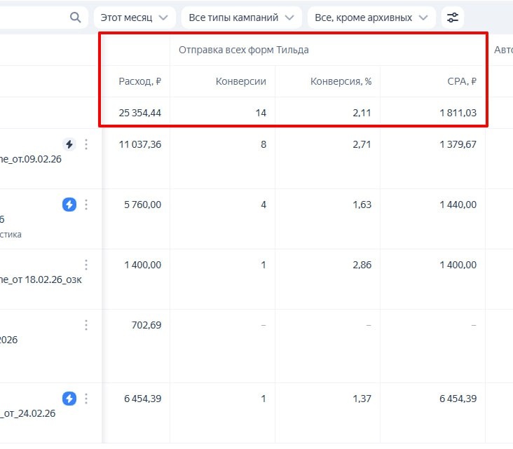 Мои наблюдения по проекту в нише ораторского мастерства. В феврале рекламу в Директе запустили в первый раз, ранее не было запусков и за месяц получили: — 10 заявок — расход 34 892 ₽ — цена заявки 3 489 ₽ Честно, было сложно справится, хотелось всё время перезапустить рекламу. А тут прошло 10 дней марта и мы уже сделали результат всего прошлого месяца. Текущая статистика (март): — 14 заявок — расход 25 354 ₽ — цена заявки 1 811 ₽ В итоге: Цена заявки снизилась на 48% с 3480 ₽ до 1800 ₽ И результат прошлого месяца сделали в 2,8 раза быстрее. Какие выводы можно сделать по этой рекламной кампании. Первые запуски — это почти всегда сбор данных для себя и алгоритмов. Да, может выстрелить в первую же неделю. Тут как повезет. В феврале: — сначала использовали оптимизацию на клики — затем переключились на оптимизацию по конверсиям После этого алгоритм начал обучаться на отправку заявки, а не на клики по рекламе. (изначально тут был интерес попробовать быстро собрать людей, кто уже