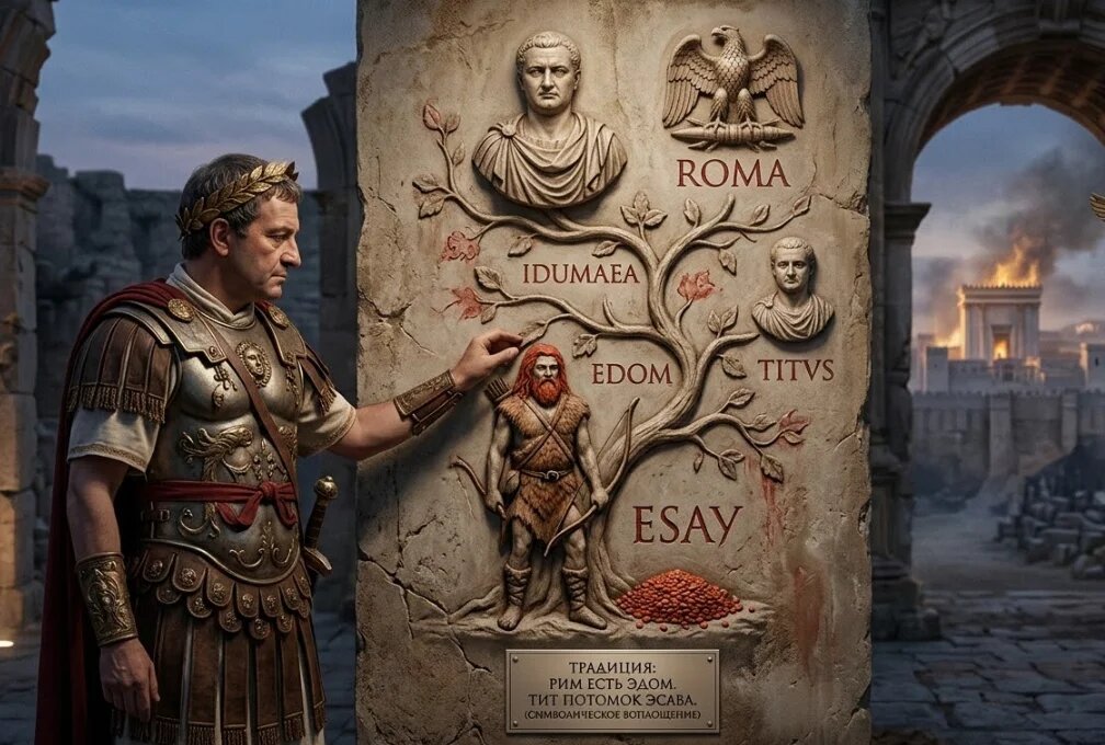 ✍️ Вопрос раввину: Правда ли, что император Тит был потомком Эсава? ✍️ Ответ pаввина Реувена Куклина Да, с точки зрения еврейской традиции это утверждение совершенно верно. Чтобы проследить эту связь, нужно обратиться к тому, как наши мудрецы рассматривают историю народов. Согласно Торе, от Эсава произошел народ Эдом, как прямо сказано в книге Брейшит: «Эсав, он же Эдом». В свою очередь, в талмудической и мидрашистской литературе Римская империя традиционно идентифицируется именно с Эдомом. Наши мудрецы видели в Риме прямое духовное и национальное продолжение линии Эсава. Соответственно Тит, разрушивший Второй Храм в Иерусалиме, действовал как вождь и истинное лицо Римской империи, в полной мере воплощая в себе эту историческую преемственность. Талмуд прямо называет Тита потомком Эсава. Об этом рассказывает известная история из трактата Гитин (56б). Гемара повествует, что когда Тит плыл в Рим после разрушения Храма, на море разыгралась страшная буря. Вместо трепета Тит проявил невероя