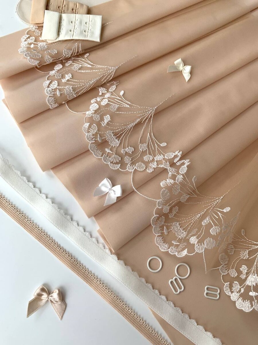 🌟 Вышивка на сетке имеет более крупные ячейки, чем обычное кружево, поэтому может подстраиваться под разные оттенки ткани 💓 на фото сочетания с бежевым и загар. На сайте можно найти под артикулами: ВС-057 и ВС-056