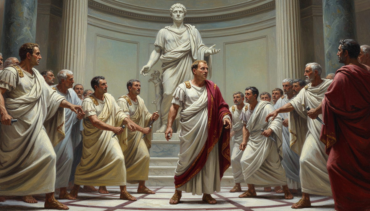 Заговорщики окружили его кресло под видом подачи прошения. Луций Тиллий Цимбр схватил его за тогу, стаскивая с плеч. Это был сигнал.