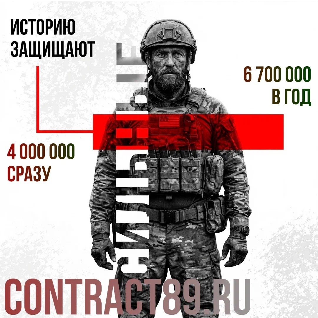 При заключении контракта с ВС РФ от Ямала вы получите: ✔️ 6 700 000 ₽ в год ✔️ 4 000 000 ₽ единовременно ✔️ от 225 000 ₽ ежемесячно в зоне СВО Подробности: contract89.ru
