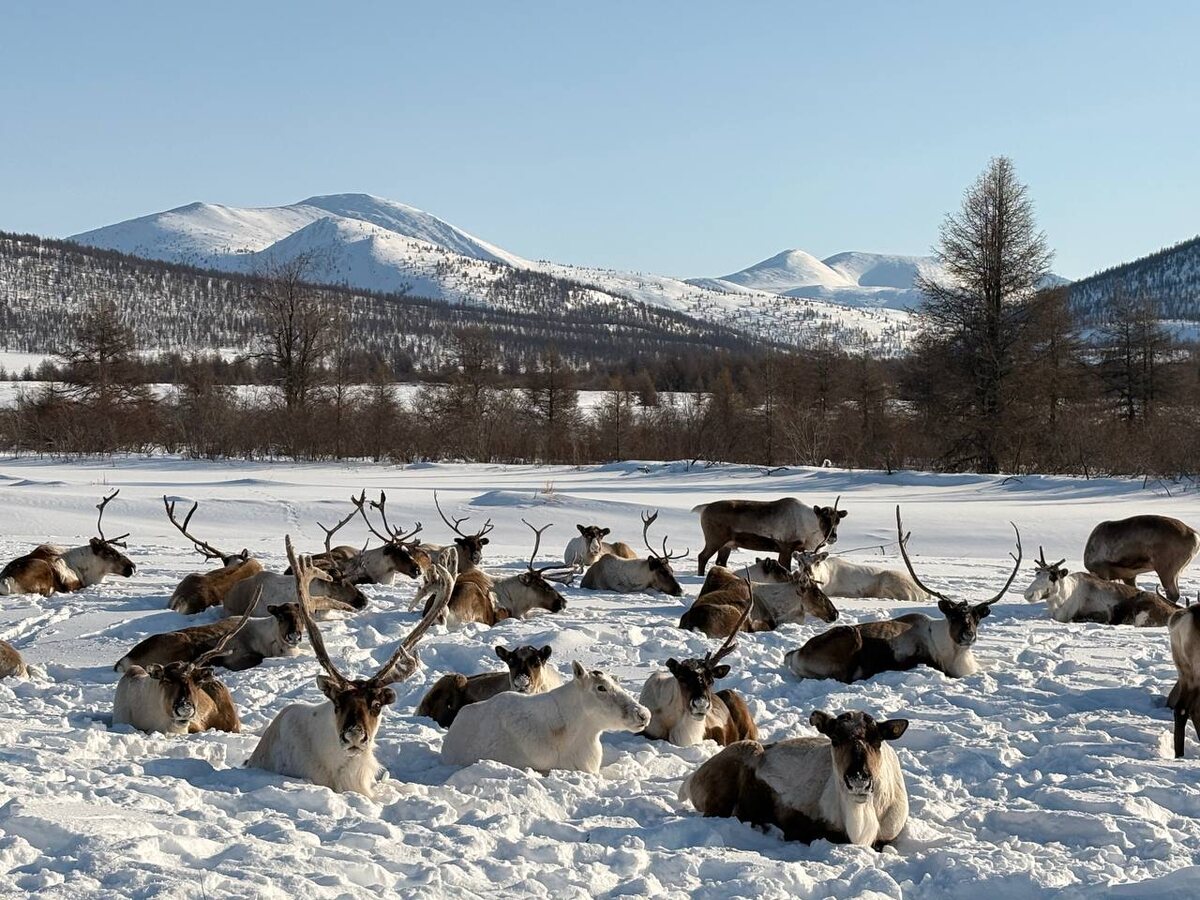 Сасыр – Усть-Нера. Часть два. 5 марта. На самом деле, во второй части рассказа про этот день мне рассказывать особо не о чем. Но телеграмм не даёт публиковать больше 10 фотографий к одной истории. А я просто не могла не показать вам прекрасных оленей, которых мы снова встретили на своём пути. В начале нашего путешествия по Якутии мы специально заехали к оленеводам в стойбище. Вернее, не в само стойбище, а в то место, куда оленеводы пригоняют оленей для встречи их с туристами (об этом, конечно, заранее договариваться надо). Тут же мы пока ехали, видели, что всё сильно истоптано оленями. Значит, где-то рядом они есть. Думали, что увидим их где-то вдали. А они раз – и лежат вдоль дороги. Отдыхают. Где были в это время оленеводы, непонятно. Но мы в любом случае не стали выходить из машин, чтобы зазря животных не беспокоить. Вот, собственно, и всё про зимники, бездорожье и безкомфортье. Мы подъехали к нулевому километру зимника Арктика и выехали на трассу Колыма. Это по ср