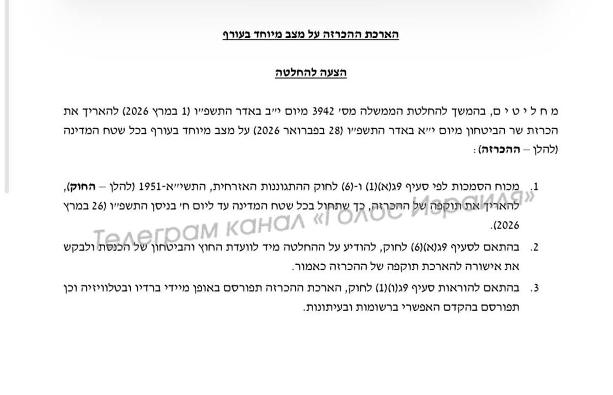 ⚡️Израиль утвердил продление особого режима в тылу до 26.3.2026 — ещё на две недели.