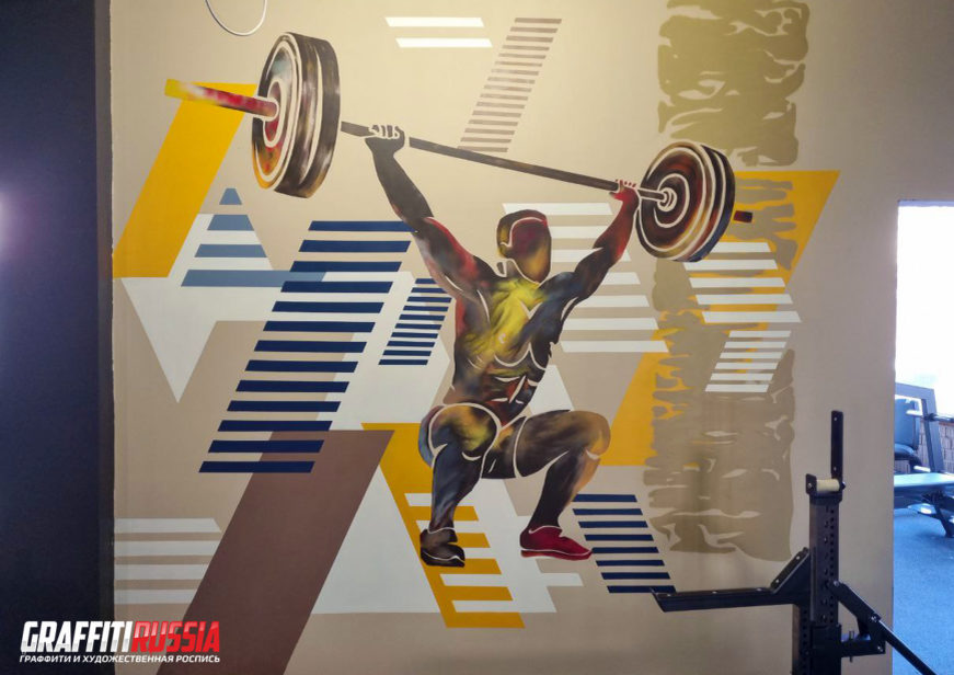 Граффити с образами силы: мощные атлеты, взрывы энергии, насыщенные контрасты. Такая атмосфера мобилизует и помогает выкладываться на 100%.