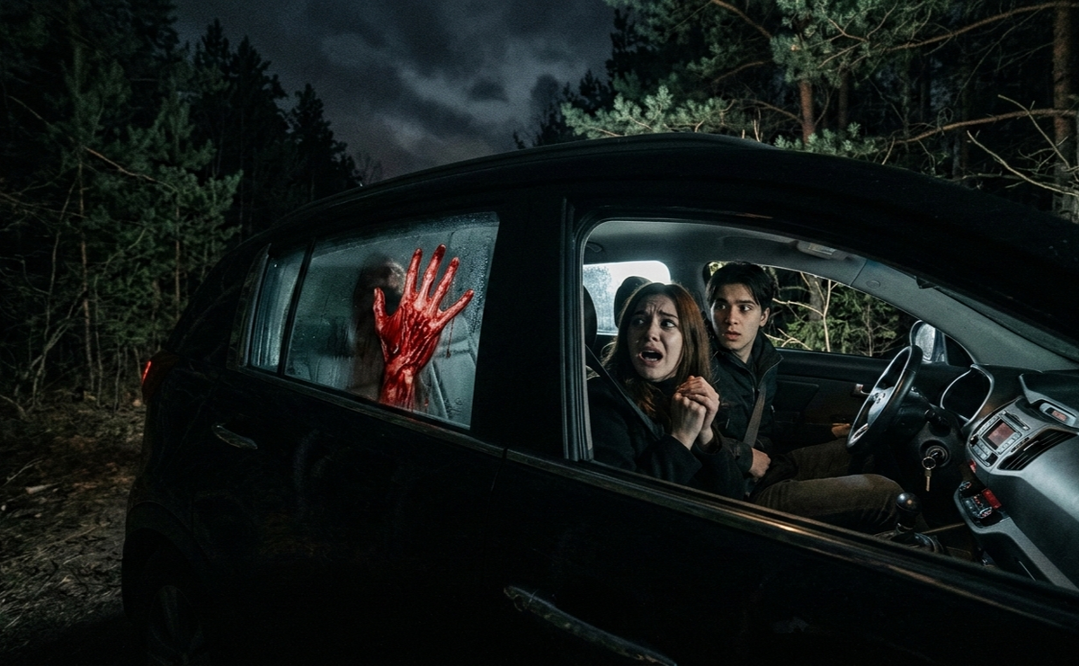 Мы начали одеваться, и в этот момент по лобовому стеклу что‑то скреблось. Звук был мерзким, будто когти царапали стекло, медленно, методично. Мы протёрли запотевшие окна и вгляделись в ночь. Вокруг машины не было ни души.