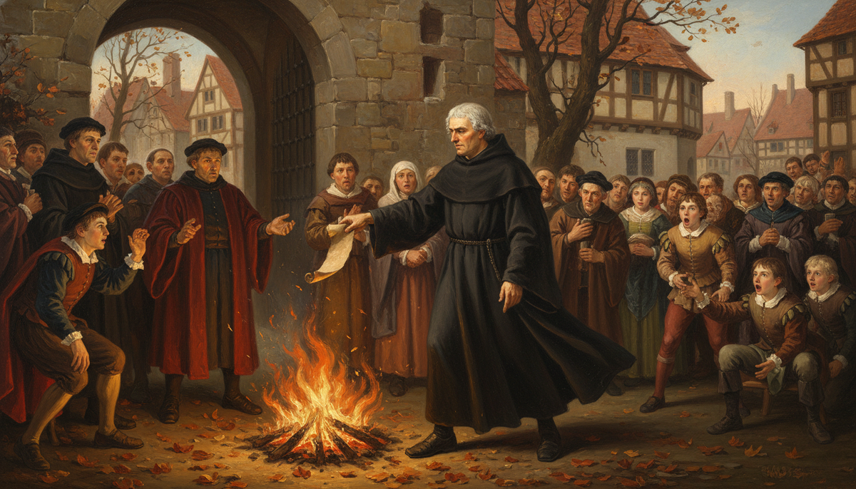 10 декабря 1520 года у ворот Виттенберга Мартин Лютер публично сжёг папское послание. Вместе с ним в огонь полетели книги канонического права. Он объявил папу антихристом.