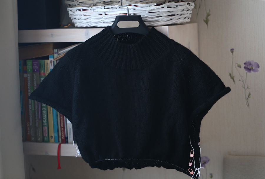 С этими праздниками режим совсем сбился. Седьмого вечером выходим из ТЦ - везде люди, спешка, в оранжевом свете фонарей снег сыпет и кружится - ну как есть предновогодняя суета. И морозы всё ещё не отпускают, хотя вот-вот "тридцатник" должен уйти. Ждём:)) Я уже два раза пересмотрела свой гардероб в сторону весны, посмотрела на весеннюю пряжу - пока не впечатлилась. Холодно впечатляться-то:)) Пока вяжу самую беспроигрышную вещь - чёрный пуловер с воротником "стоечкой", который пойдёт иллюстрацией описания расчёта "на 50 петель": Оказывается, в ярком весеннем свете гораздо легче вязать тёмные вещи, я бы даже сказала, что это лучшее время для чёрных вещей: света с каждым днём всё больше, а яблони и прочие ароматы ещё не сбивают с пути истинного. Пуловер примеряю - мне нравится, вяжу с удовольствием, воротник сделала чуть меньше (27 рядов), чем у белого, а так всё одинаково: Судя по функциональности белого пуловера, чёрный будет ещё более носибельный. Честно говоря, не нарадуюсь, что творч
