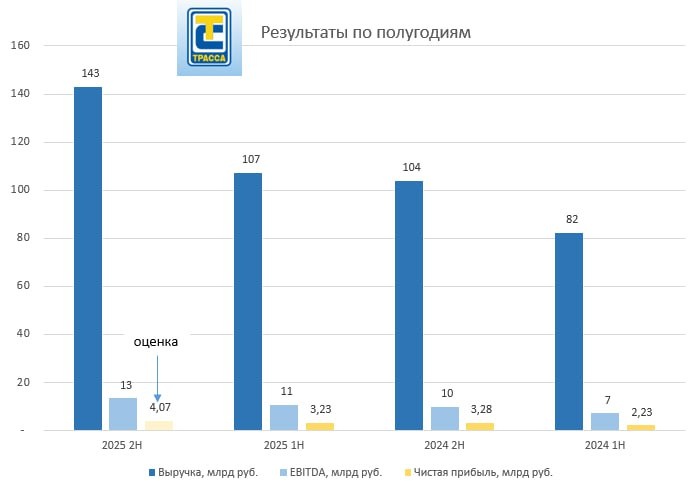 Компания о которой я не часто вспоминаю, но которая находится в фокусе внимания последнее время. ЕвроТранс является одним из крупнейших независимых топливных операторов России, работающим под брендом АЗС "Трасса" Компания управляет сетью из 56 высокотехнологичных автозаправочных комплексов, которые представляют собой полноценные ритейл-центры. Стратегия развития компании сфокусирована на трансформации в мультитопливный холдинг и лидерство в "зеленой" энергетике. Ключевым приоритетом является масштабное развертывание сети быстрых электрозарядных станций (ЭЗС) мощностью до 150 кВт на базе действующих комплексов, что должно подготовить бизнес к энергопереходу. В основном это всё красивые слова. Напомню, что при выходе на IPO компания планировала 63-64 заправочные станции к текущему моменту, но что-то пошло не так. В 2023 было 55 АЗС , стало 58. 🔹 Перейдём к отчётам. Предварительные цифры за 2025 год свидетельствуют о прекрасных результатах. ▫️ Выручка превысила 250 млрд руб. (+34%).