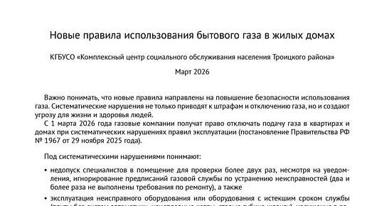 С 1 марта 2026 года газовые компании получат право отключать подачу газа в квартирах и домах при систематических нарушениях правил эксплуатации (постановление Правительства РФ № 1967 от 29 ноября 2025 года). Под систематическими нарушениями понимают: Кроме того, под причины для отключения газа попадают: За нарушения предусмотрены штрафы: По новым правилам отключение возможно только внутри помещения (пломбировка задвижки или видимый разрыв соединения). При этом, при прямой угрозе аварии отключение происходит немедленно. Однако, после устранения нарушений и оплаты услуги по повторному подключению, подача газа должна быть восстановлена в максимально короткие сроки. Юридические советы для пользователей бытовым газом: Читать на сайте