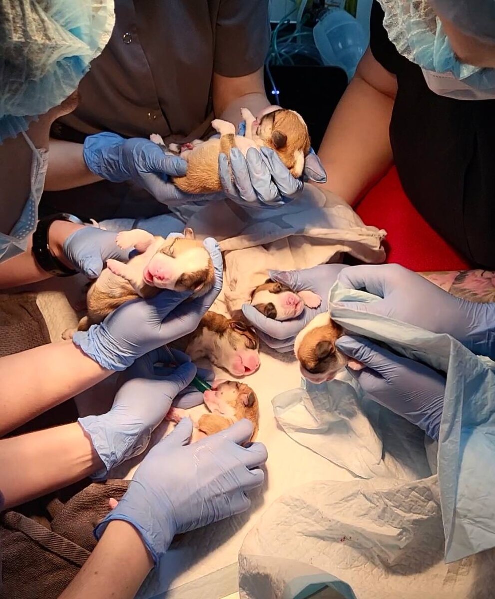 Собака Барни поступила утром в клинику «Ветдоктор» с признаками начала родовой деятельности. Со слов хозяйки: вторые роды, собака пыхтит, наблюдается снижение температуры, отсутствие потуг. По результатам проведенных рентгенографии и УЗИ подтверждена многоплодная беременность, плоды с активной сердечной деятельностью. Собаке незамедлительно и успешно была проведена операция- кесарево сечение. Благодаря слаженной работе хирурга и анестезиолога на свет появилось 6 здоровых щенков. 🔸Врач-хирург: Андреева Мария Александровна 🔸Анестезиолог: Богданович Ксения Александровна 🔸УЗИ-специалист: Мелихова Евгения Сергеевна 🔸Бригада, проводившая реанимационные мероприятия для новорожденных щенков: Осадчая Юлия Владимировна Махотина Полина Олеговна Гудков Дмитрий Алексеевич Гилева Анастасия Викторовна Барышева Елизавета Денисовна Бердышова Ксения Андреевна Поздравляем владельцев с прибавлением, а Барни и её малышам желаем сил и крепкого здоровья! 🧡🧡 #ветдоктор