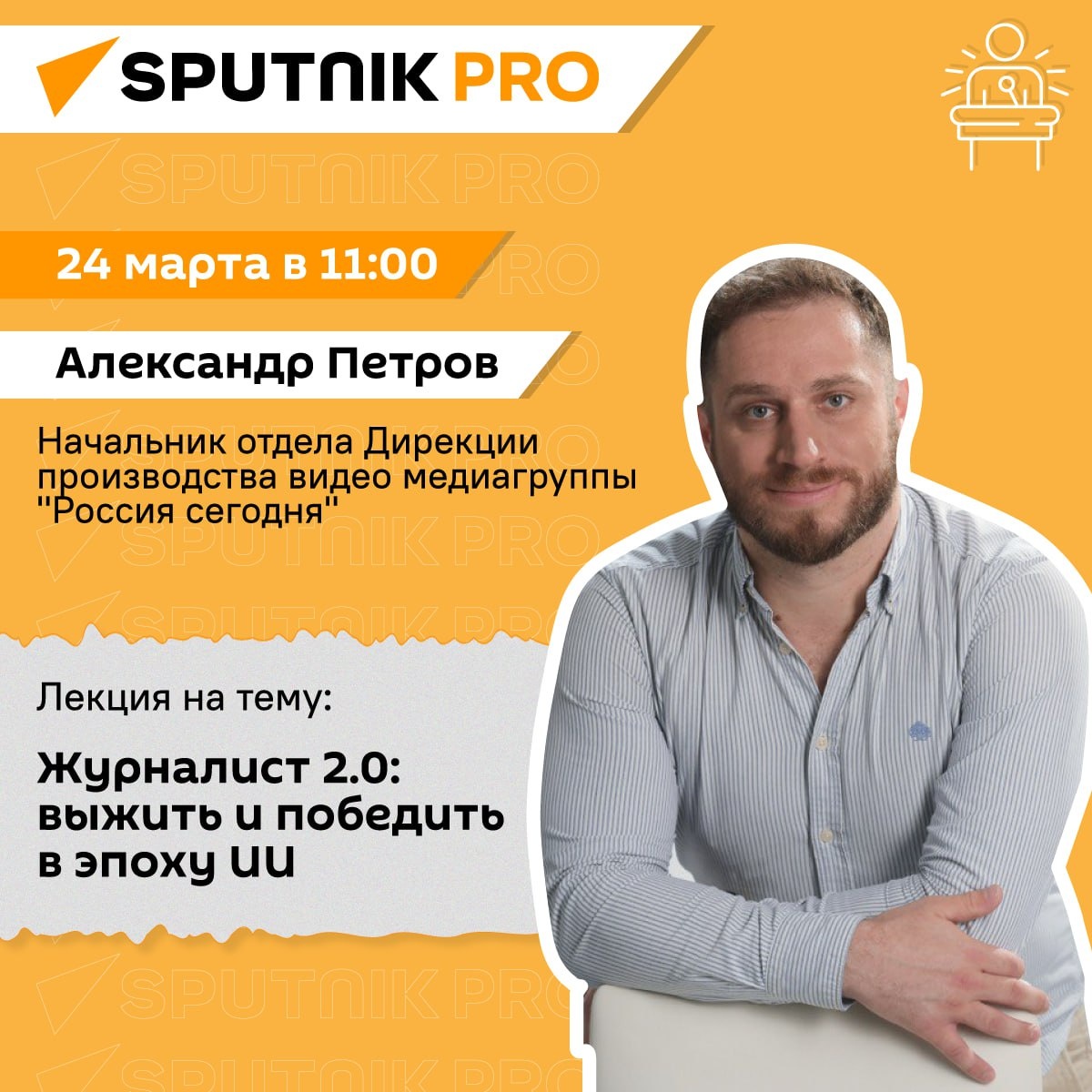 Во вторник, 24 марта, в 11:00 в мультимедийном пресс-центре Sputnik Беларусь состоится новый модуль SputnikPro на тему: "Журналист 2.0: выжить и победить в эпоху ИИ". Обучение проведет Александр Петров – начальник отдела Дирекции производства видео медиагруппы "Россия сегодня". В этот раз пойдет речь, о том, как "приручить" искусственный интеллект и заставить его работать не только на редакцию, но и конкретного человека. 🔴 Читайте Sputnik Беларусь в MAX