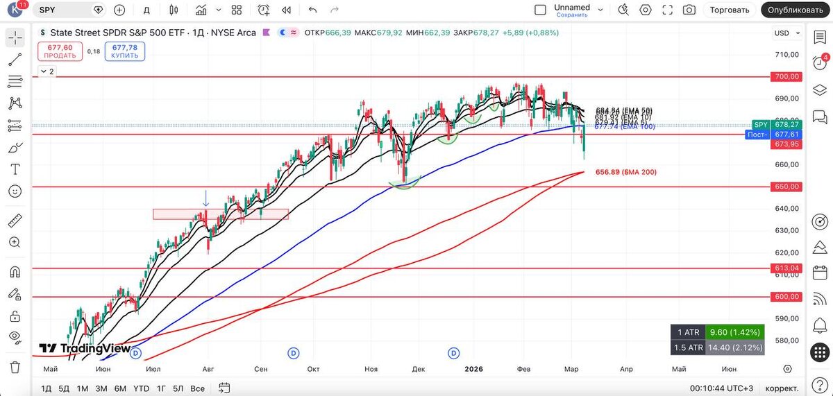 Однако вчера мы получили ряд новых триггеров, таких как: $IXIC на 200 EMA D + $XLK удерживает 200 EMA D + $MAGS вернулся за 200 EMA D + $DIA на 200 EMA D + $SMH на 100 EMA D (20 EMA W) + фьючерсы $ES1!, $NQ1! и $YM1! на 200 EMA D = независимо от поступающих новостей и происходящего в мире, мы, как математики, видим ряд приборов на закономерностях, поэтому действуем и открываем новые позиции. И как написал выше, возможно нас ждут продолжения волатильных дней, и, возможно, мы часто будем стопиться = и это нормально. Где будет дно рынка — никто не знает, но имея такие ключи, мы обязаны открывать позиции. #spy #технический_анализ #америка #трейдинг_сша #фондовый_рынок #обзор #вывод #qqq #vix #smh #mags #xlk #ixic
