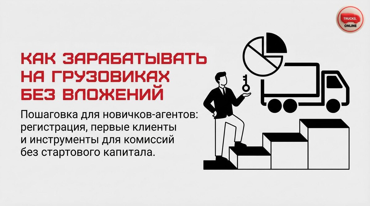 Новые агенты, фрилансеры или те, кто хочет войти в рынок коммерческого транспорта, часто спрашивают: как стартовать без своих денег? Это всплывает, когда человек видит объявления о грузовиках, но понимает, что покупать их сам не может. Важно разобраться, потому что правильный старт дает первые комиссии за 1–2 недели, а ошибки тянут на месяцы без дохода и сжигают мотивацию. По сути, зарабатывайте как посредник: регистрируйтесь на B2B-платформах вроде TRUCKS.ONLINE как агент, подбирайте технику клиентам из проверенных источников и получайте комиссию 2–5% от сделки. Без вложений, только время и телефон. 1. Регистрация и настройка профиля.