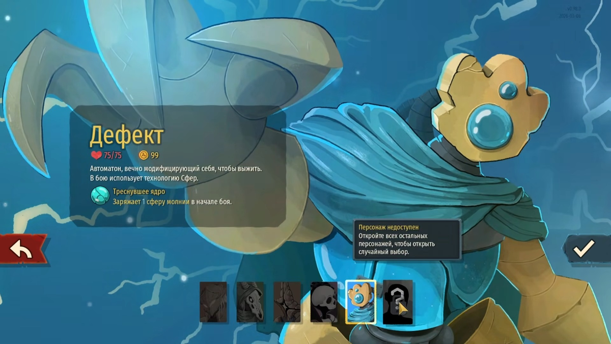 Дефект в Slay the Spire 2 — это хорошо знакомый ветеранам серии персонаж, вернувшийся с новыми силами. Этот загадочный автоматон управляет полем боя с помощью стихийных сфер четырех типов: Молнии, Льда, Тьмы и Плазмы. Вся суть игры за этот класс строится вокруг правильного создания и использования этих энергетических сгустков. На первый взгляд механики Дефекта могут показаться запутанными, но, поняв базовые принципы, вы сможете создавать невероятно мощные комбинации. В этом руководстве разобраны основы тактики, полезные советы по использованию способностей и лучшие карты для успешного прохождения Шпиля. Как разблокировать Дефекта Этот класс недоступен с самого начала игры. Чтобы поиграть за мастера стихий, вам придется предварительно совершить хотя бы по одному забегу каждым из четырех других стартовых персонажей. Основы тактики: Пассивный урон и защита Геймплей за Дефекта кардинально отличается от прямолинейных атак других классов. Ваша главная задача — генерировать стихийные сферы с