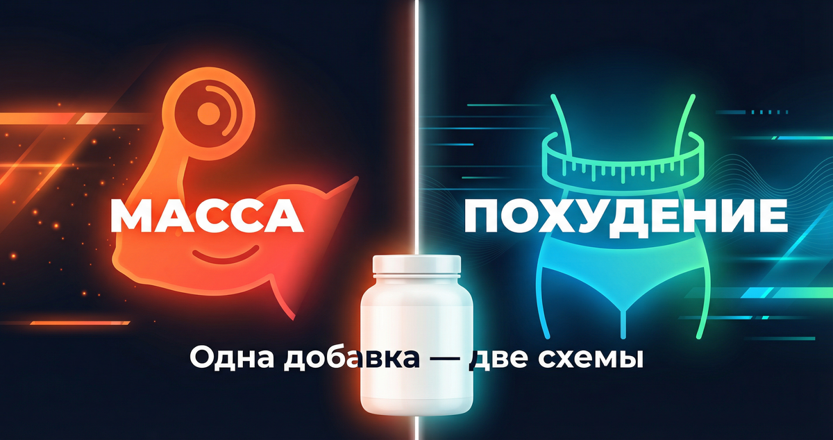 Схема для массы: — Суточный белок: 1,8–2,2 г × кг веса — 1–2 порции добавки в день как добор к еде (25–30 г белка в порции) — Время: с завтраком, после тренировки или между приёмами пищи — Форма: сывороточный (whey) — быстро усваивается, универсален