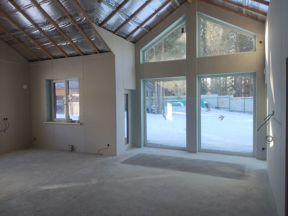 Закончены работы по монтажу гипсокартона в каркасном доме!