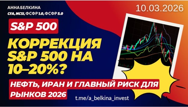 Тема: Коррекция S&P 500 на 10–20%? Нефть, Иран и главный риск для рынков 2026 #sp500 #brent #us10y В этом видео разбираем ключевые макроэкономические риски для рынка акций и возможную коррекцию S&P 500. Обсуждаем конфликт США–Израиль–Иран, влияние роста нефти и возможные перебои поставок через Ормузский пролив, а также заявление Дональда Трампа о возможном скором завершении войны. Может ли это быть вербальной интервенцией для охлаждения нефтяного рынка? Также рассмотрим, какие факторы могут спровоцировать коррекцию американского фондового рынка на 10–20%: рост доходностей Treasuries, перегрев в AI-секторе, торговые конфликты и геополитические риски. Разберём, что происходит сейчас на рынках и какие сценарии могут реализоваться дальше. YouTube |Rutube | VK Видео В закрытом канале в ближайших постах подробнее разберём заявление Трампа о возможном завершении войны и сделаем обновление по рынку газа #gas. Сейчас как раз действует недельная скидка 20% на все тарифы на подписку в честь