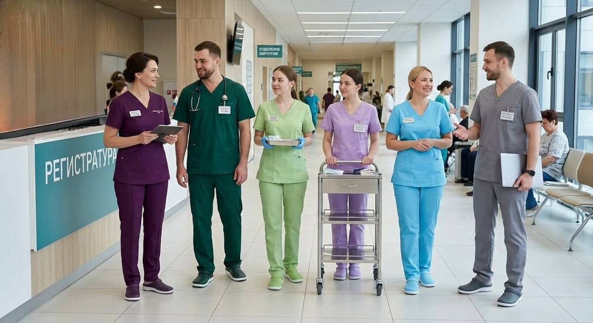 Минздрав представил новые рекомендации по форме: 💜 Руководство — фиолетовый 💚 Врачи — тёмно-зелёный 💚 Средний медперсонал — салатовый 💙 Младший — лавандовый 💙 Администраторы — голубой 🖤 Немедицинский и IT-персонал — серый Также в документе есть требования к обуви: удобная, на гибкой рифлёной подошве толщиной 2-3 см для снижения нагрузки на ноги. 🔵Проголосовать за канал ❤️ Импульс Севера | Подписаться в MAX