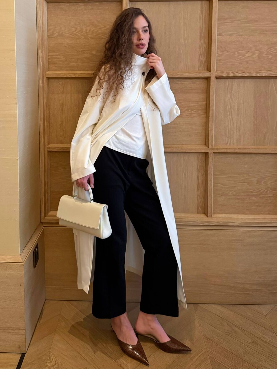 ? Модель из легкого шерстяного твила — подойдет для переменчивой весенней погоды. Плащ можно сочетать с лонгсливом и классическими брюками или надеть поверх платья любой длины. Он не сковывает движений благодаря объемному силуэту, а подчеркнуть фигуру помогает пояс. Больше верхней одежды на межсезонье можно найти на сайте, в приложении и магазинах 12 STOREEZ 🤍 12 STOREEZ