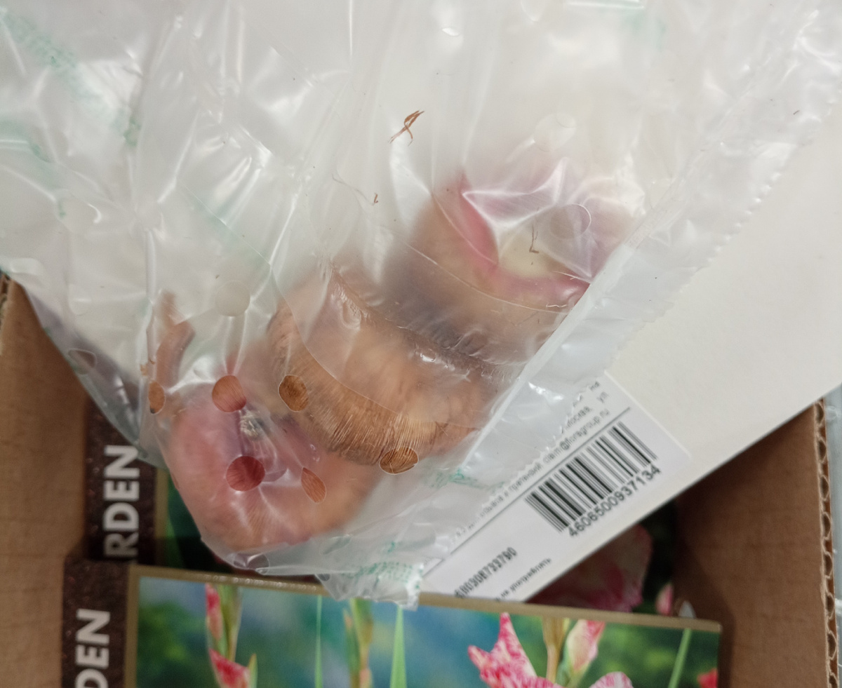 И начну свой обзор с гладиолусов-королевских цветов. В упаковке по три луковицы. Состояние луковиц отличное. Цены разные, постараюсь подписать каждый сорт.