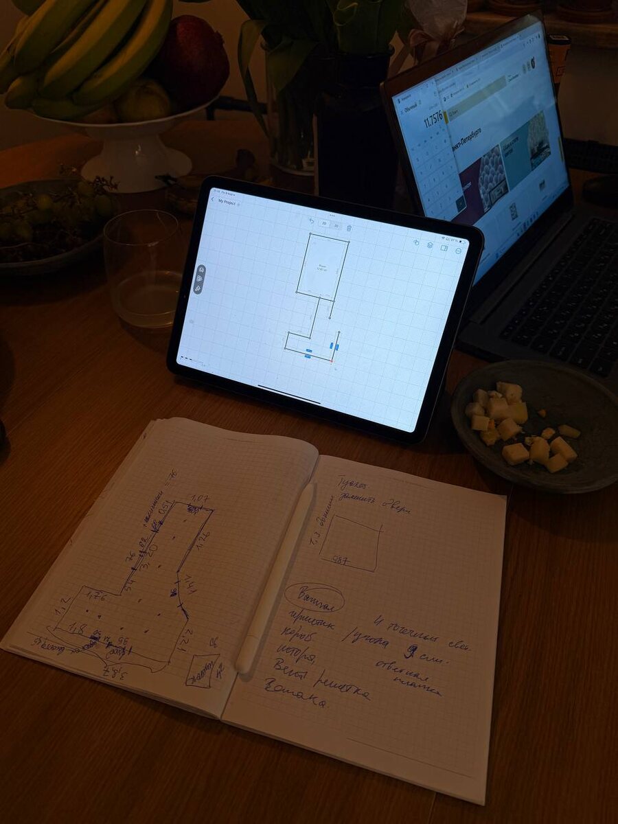 🤭 Нас, конечно, хлебом не корми, дай что-нибудь отремонтировать 1️⃣ На этот раз мой дедушка поддался таки на уговоры и согласился навести лоска на квартиру, которую он сдает. Так что у нас задача: быстро и с минимальными вложениями сделать красоту под сдачу в аренду. Вчера вот сняли замеры, вечером с Колей делали приблизительный расчет по материалам, мебели и тд. В основном Коля, конечно, я отрисовывала в программке и мебель прикидывала В ближайшие дни буду шерстить маркетплейсы, Авито, пинтерест и домовые чаты в поисках идей и алмазов) Не теряйте 1️⃣