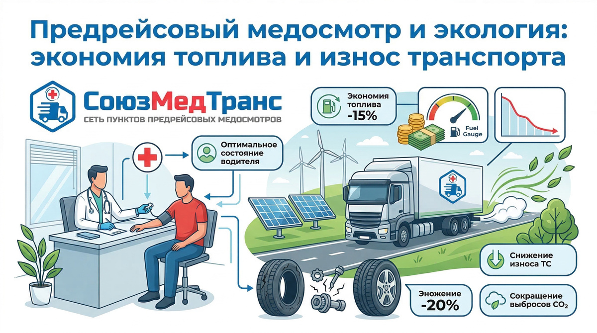 В современном мире экология выходит за рамки сортировки мусора и электромобилей. Один из неожиданных факторов — предрейсовый медосмотр водителя. Казалось бы, простая проверка зрения, давления и нервной системы. Но на деле она напрямую влияет на расход топлива, износ тормозных колодок и даже выбросы CO2. Почему? Через здоровье и концентрацию водитель становится аккуратнее, а это — ключ к экономии и экологии. Представьте: водитель с усталостью или плохим зрением резко жмет на газ, а потом тормозит в панике. Каждый такой маневр сжигает лишние 0,5–1 литр топлива на 100 км и ускоряет износ тормозных колодок на 20–30%. По данным исследований Американской автомобильной ассоциации (AAA), агрессивный стиль вождения увеличивает расход топлива на 15–30%. Предрейсовый медосмотр выявляет риски заранее: Здоровый водитель едет плавно: равномерный газ, предсказуемое торможение. Результат? Минус 5–10% расхода топлива и вдвое меньший износ шин и подвески. Аккуратное вождения — это не только экономия для