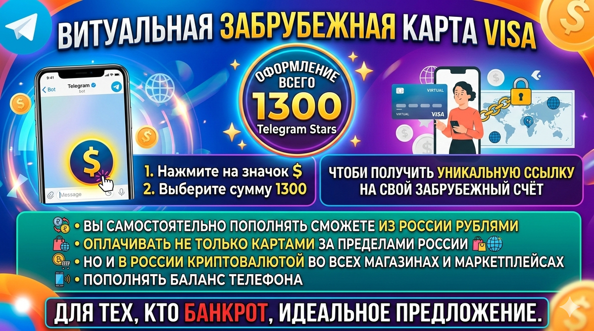 Откройте Виртуальную Зарубежную Карту VISA за 1300 Telegram Stars: Доступный Способ для Россиян в 2026 Году