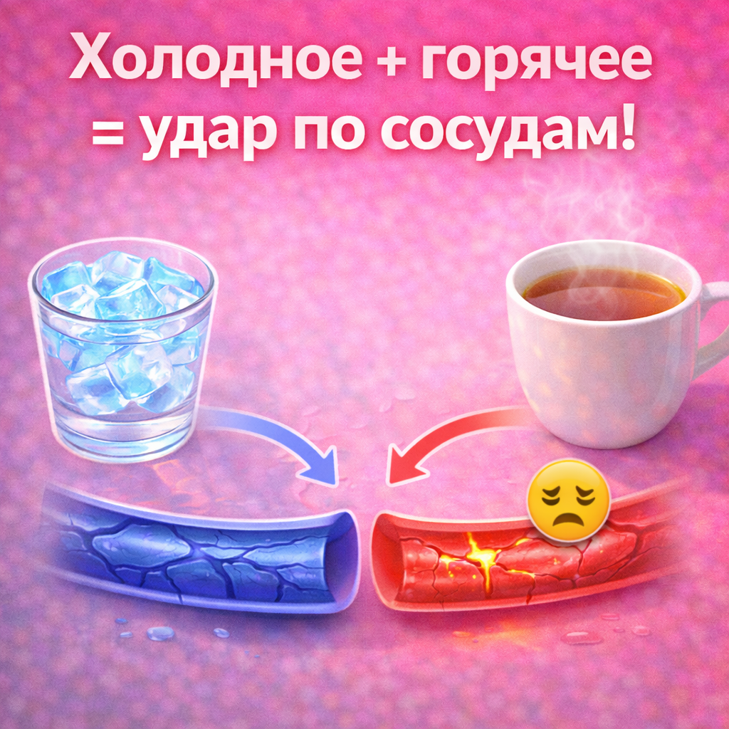 Вы замёрзли, зашли в тёплое помещение, выпили ледяной воды (чтобы «освежиться») и сразу горячий чай. Сосуды в шоке.