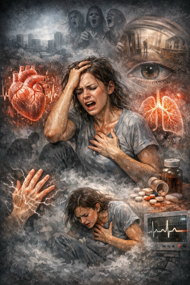 Паническая атака — это внезапный приступ интенсивной тревоги и страха, который причиняет сильное страдание человеку и сопровождается различными соматическими (вегетативными) симптомами.