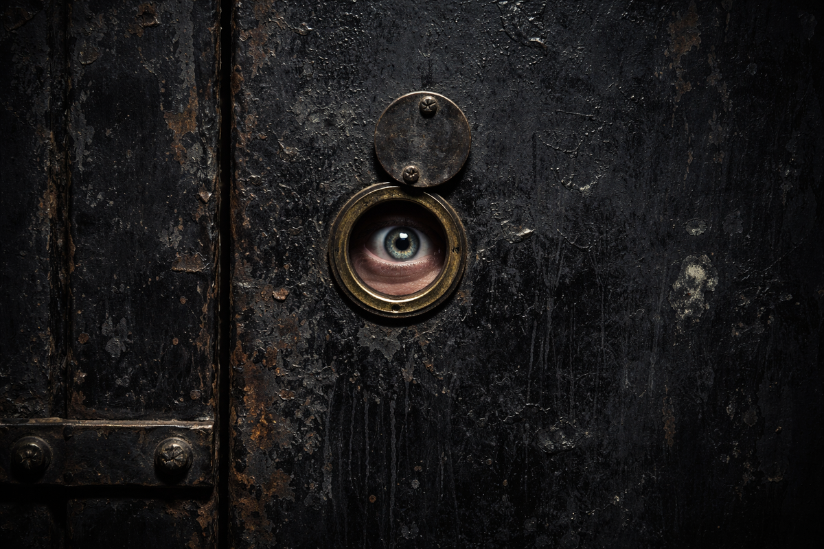 Вдруг он услышал знакомый звук открываемого дверного глазка. Он взглянул на дверь и увидел всё тот же глаз.