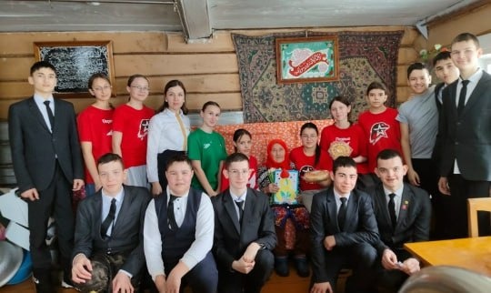 ✨Халыкара хатын-кызлар көне алдыннан 8а һәм 8 Б сыйныф активист – волонтерлары Киңәшчесе Альбина Хантимирова белән бергә өлкән яшьтәге хатын-кыз-хезмәт фронтында катнашучы, тыл ветераны Хәйруллина Миңниса Хәйрулла кызын котладылар. ✨Волонтерлар аңа чәчәкләр, зур булмаган бүләкләр һәм ихлас җылылык, шатлык һәм игътибар бүләк итү теләге белән кунакка килделәр. Алар өчен иң мөһиме — бу хатын-кызларның батырлыгы һәм тормыш юлы кешеләрнең хәтерендә һәм йөрәкләрендә мәңгегә сакланачагын ассызыклау. ✨Очрашу барышында активистлар Миңниса апаны 92 яшьлек туган көне белән һәм 8 Март бәйрәме белән котладылар, сәламәтлек һәм күтәренке кәеф теләделәр. Шулай ук волонтерлар җыештыру эшләрен башкардылар, ишегалдын кардан чистарттылар. ✨Ветераннар янында булу, аларның казанышларын истә тоту һәм аларга игътибар итү — безнең бурычыбыз һәм намусыбыз. Бу сүзләр хәтерне саклауның һәм хөрмәт итүнең мөһимлеген искә төшереп торсын.