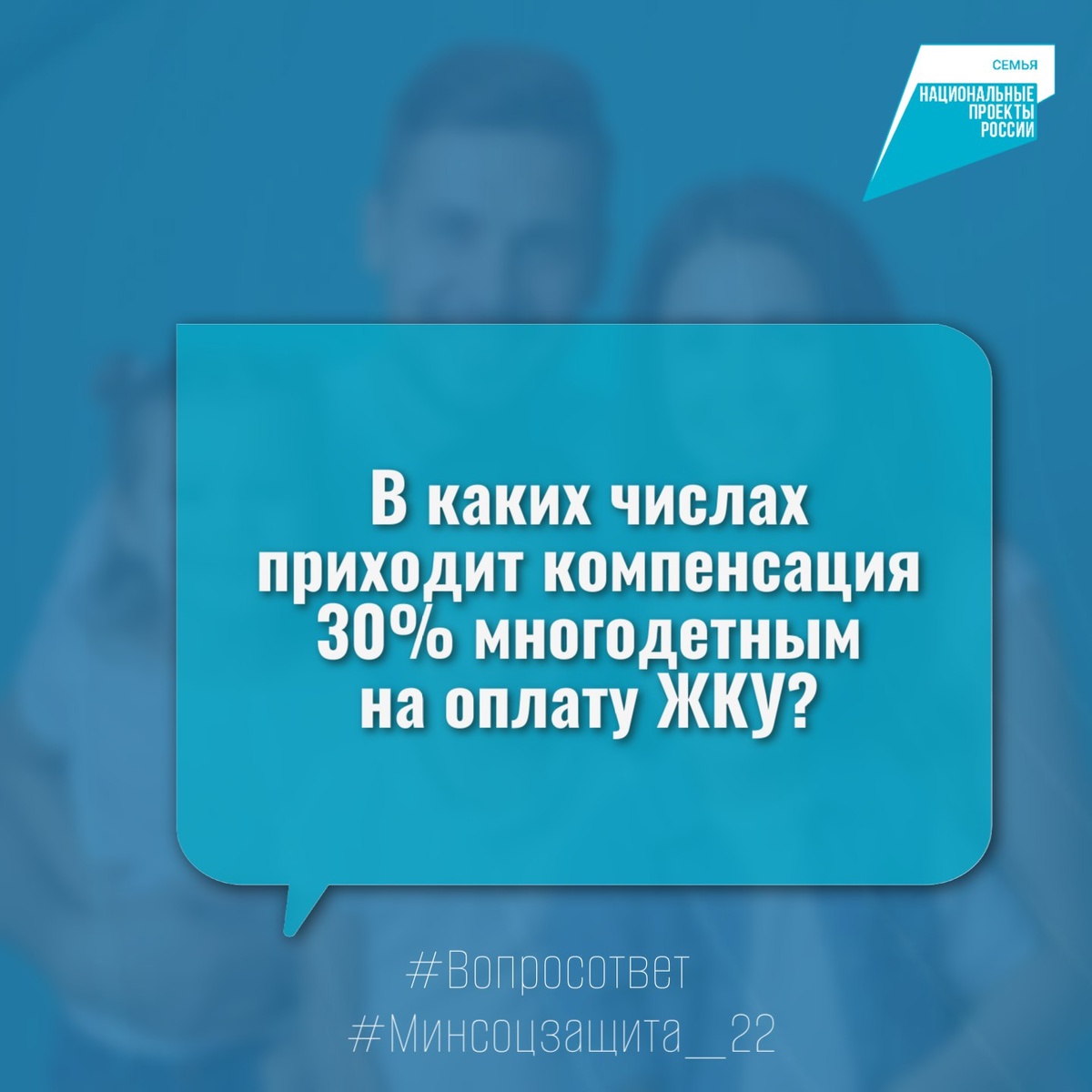 ❔Здравствуйте! В каких числах приходит компенсация 30% многодетным на оплату ЖКУ