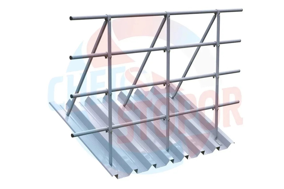 и ограждающими элементами 4 шт.) h=1200мм, L=3000мм. Состав комплекта: 1. Стойка ограждения h=1200мм (труба 20х20) – 3 шт. 2. Ограждающий элемент (труба 25; дл. 3000мм) – 4 шт. 3. Резиновая прокладка под пятку стойки – 6 шт. 4. Хомут «С» образный – 9 шт. 5. Шуруп оцинкованный 6х50 в комплекте с шайбой – 12 шт. 6. Болт оцинкованный 6х55 в комплекте с шайбой и гайкой – 12 шт. (крепление ограждающих элементов) 7. Масса комплекта: 12,5 кг. ООО "ТД"РУФЛАЙН" - забота о Вашей безопасности! Tel - Telegram - Max +7(343)207-65-68 +7(922)021-97-56 pm3@uralroof.ru http://руфлайн66.рф https://max.ru/id6685089174_biz https://max.ru/id6685089174_bot https://t.me/td_roofline https://dzen.ru/id/6238c4888f56b3749c570a09 https://t.me/roofsalebot/app
