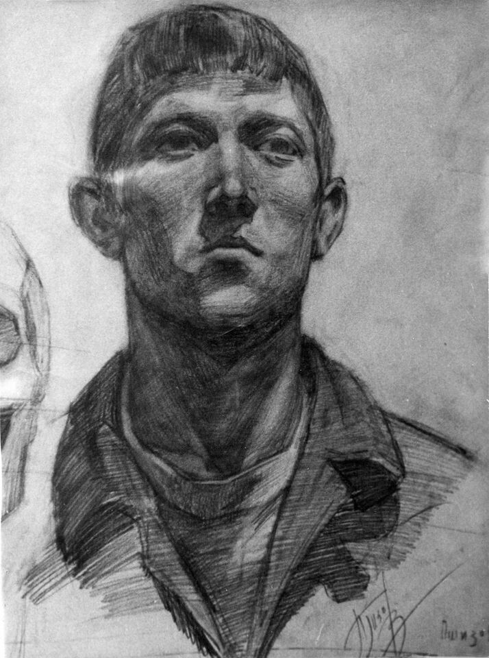 Николай Пшизов. (1941 - 1991) Портрет мужчины. Студенческий рисунок. Фотография тех лет. Местонахождение неизвестно.