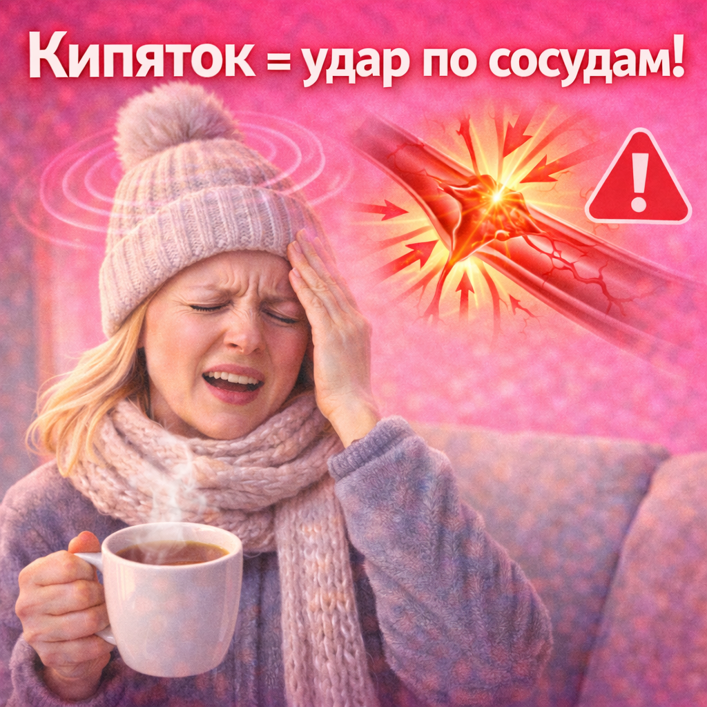 Горячая жидкость попадает в желудок и пищевод. Организм получает сигнал: «Тепло!» — и мгновенно расширяет сосуды. Все. Сразу.