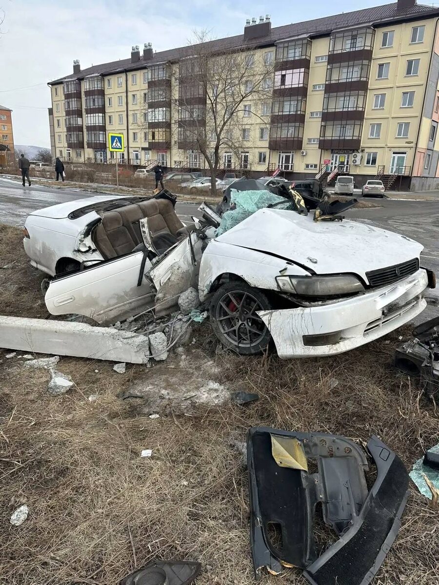 За рулем Toyota Mark II, врезавшейся в электроопору, был 21-летний водитель. Подробности ДТП на Юбилейной в Черногорске рассказали в Госавтоинспекции. Авария произошла в субботу. 21-летний водитель Toyota Mark II не справился с управлением, наехал на бордюр и врезался в электроопору. У него травма головы, а у его 46-летнего пассажира - перелом грудины, рассказали в Госавтоинспекции. Расследование по аварии еще проводят. Фото / Госавтоинспекция Хакасии