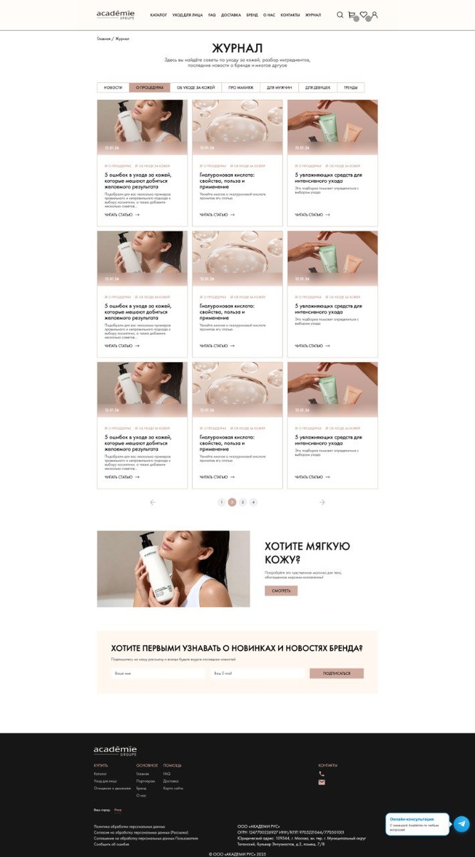 интернет-магазина производителя косметики по уходу за лицом и телом Académie. Решение направлено на повышение видимости бренда в поисковых системах и укрепление экспертного позиционирования компании в нише профессионального ухода. Кейс проекта — https://cetera.ru/portfolio/academie/ Поддержка и развитие интернет-магазинов — https://cetera.ru/ecommerce/support/