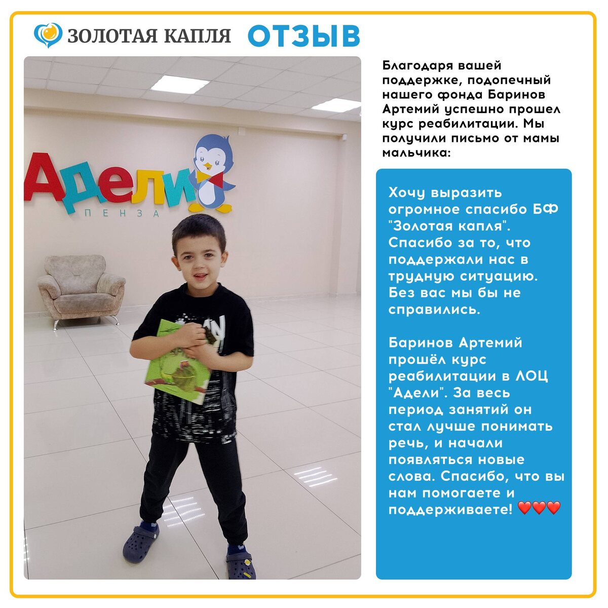 Дорогие друзья, с радостью спешим поделиться с вами замечательной новостью! 🎉 Наш подопечный, Артемий Баринов, успешно завершил курс