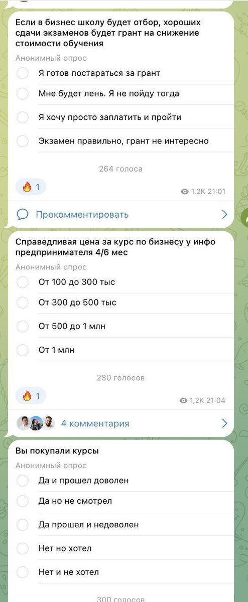 ? Наверняка вы видели это в каналах. Когда автор хочет как-то опросить аудиторию, он начинает выкладывать несколько отдельных опросов подряд от самого Telegram. Один вопрос. Потом второй. Потом третий. В итоге лента превращается в цепочку опросов. С точки зрения автора это вроде бы удобно — можно задать несколько вопросов. Но на практике появляются две проблемы: — людям просто лень проходить всё до конца — результаты потом сложно нормально собрать и превратить в какую-то полезную аналитику А значит и использовать эти ответы дальше в маркетинге или продажах тоже почти невозможно. 🔹 Поэтому я сделал сервис Quizgram Quizgram позволяет превратить обычные телеграм-опросы в полноценный квиз. Человек проходит один сценарий вопросов, последовательно отвечая на них, как в мини-тесте. А в конце вы можете: • собрать контакты • сегментировать аудиторию • выдать лид-магнит • предложить бонус или подарок То есть появляется мотивация дойти до конца, а вы получаете намного более полезные
