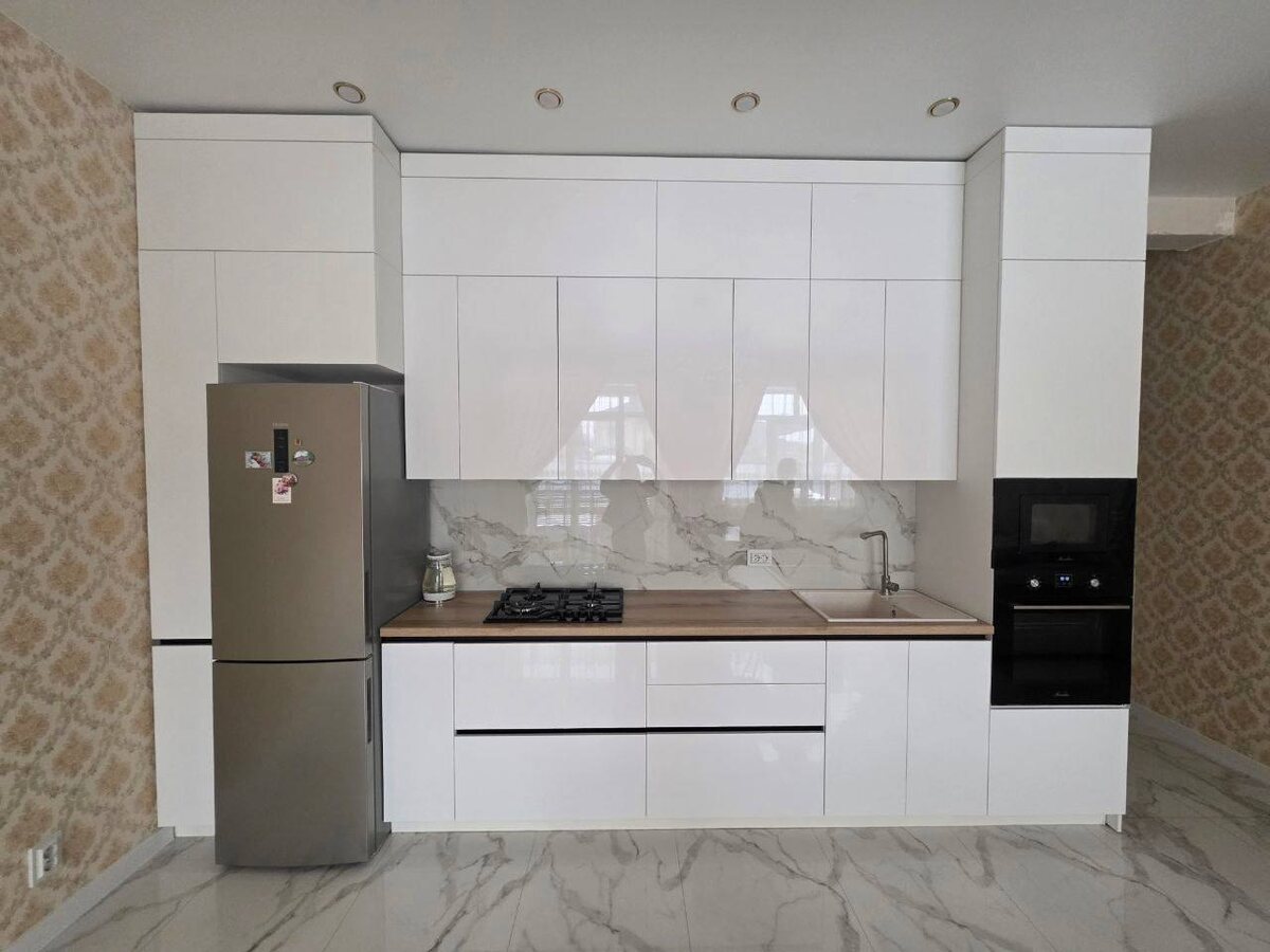Глянцевые фасады отражают свет и визуально увеличивают пространство, поэтому кухня кажется светлее и просторнее. Белый цвет легко сочетается с любой техникой, столешницей и декором — интерьер будет выглядеть аккуратно и современно долгие годы. Внутри — продуманная система хранения: вместительные шкафы, удобные выдвижные ящики и практичная рабочая зона, где всё находится под рукой. Такая кухня подходит как для небольшой квартиры, так и для просторной кухни-гостиной. Напишите «КУХНЯ» в комментариях или в личные сообщения — рассчитаем стоимость кухни по вашим размерам.