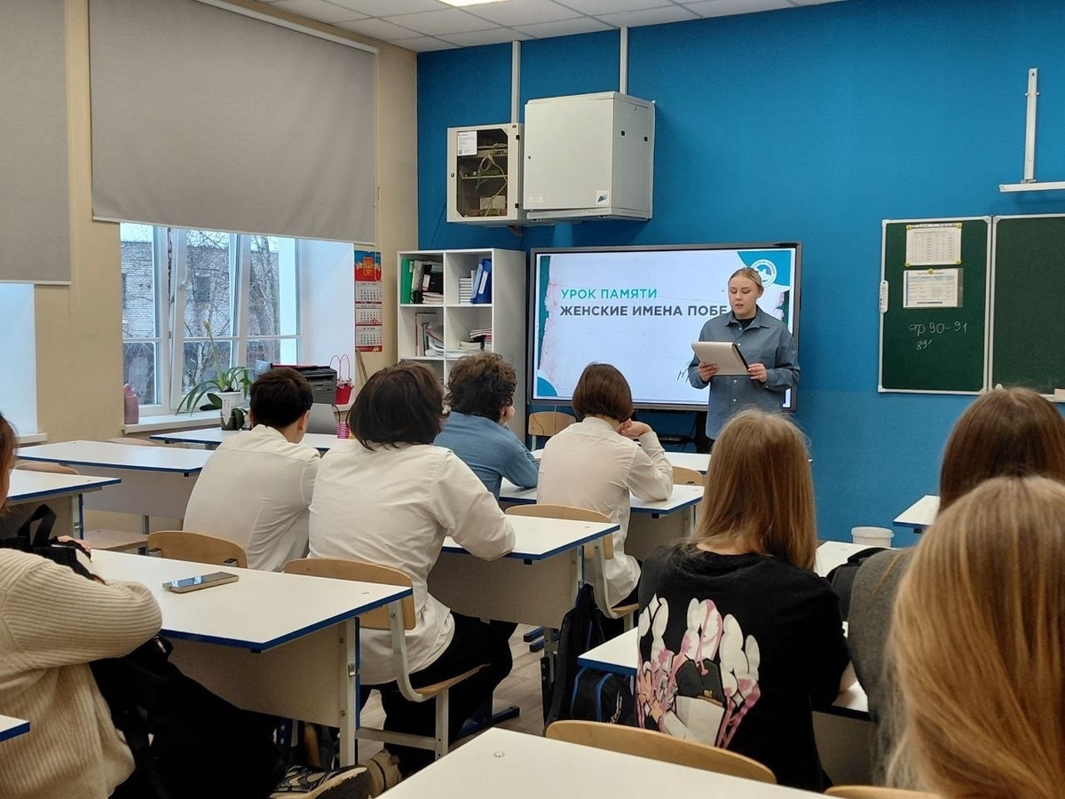» Специалист по работе с молодежью, Волонтёр Победы МАУ «Дом молодежи» — Д.А. Бочкова, провела урок памяти «У войны не женское лицо», приуроченный к Международному женскому дню, для учащихся 8 «Б» класса МАОУ СШ №2. 🗣 Во время мероприятия ребята узнали о невероятных подвигах женщин‑героинь, которые несмотря на трудности и опасности, внесли свой незаменимый вклад в победу в Великой Отечественной войне!🎖 🙏 Пусть память о героях и их подвигах живёт в наших сердцах на долгие годы.🌟 #ДоммолодежиОкуловка #ВолонтерыПобеды #НеТолько9мая #Росмолодежь #ВамЛюбимые