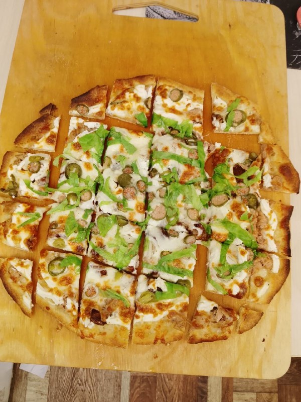 __________________________________________________________________________________________ Пекарский процент: мука пшеничная 100, вода 50, дрожжи сухие 0.2, соль 1, масло 8, солод 2. Итого: 161.2. __________________________________________________________________________________________ Рецепт рассчитан на 2 пиццы по 35.5 см. Для теста: Мука пшеничная универсальная 374 г, вода (4 °С) 187 г, дрожжи сухие 0.8 г (менее 1/4 ч л), соль 3.74 г (0.67 ч л для мелкой соли), масло (кукурузное, подсолнечное или оливковое) 29.91 г, солод диастатический 7.48 г. Общий вес теста: 2 шарика по 301.87 г. Для начинки: Рикотта 2 по 100г, моцарелла 2 по 200г, тунец консервы 2 по 185 г, овощи и другие начинки по вкусу (например: каперсы, оливки, свежая руккола, перец халапеньо, лук, лимон, томаты, острая джардиниера без жидкости). Приготовление. Мои заметки к рецепту: Источники: