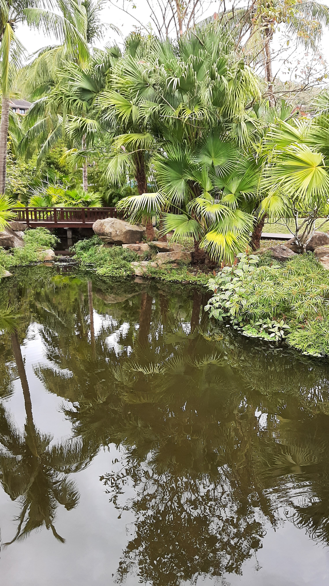 Район Ялонг Бей называют «спальным» — здесь нет шумных променадов и тусовок. Зато территории отелей огромные, утопают в зелени. В отеле туристов есть и отдельные виллы, и корпуса с номерами. Их корпус — 9-этажный, с коридорной системой и видом на горы из окна коридора.