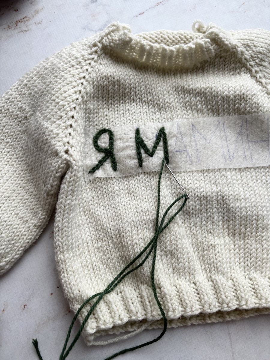 Свитер для новорождённого с вышивкой тамбурным швом.