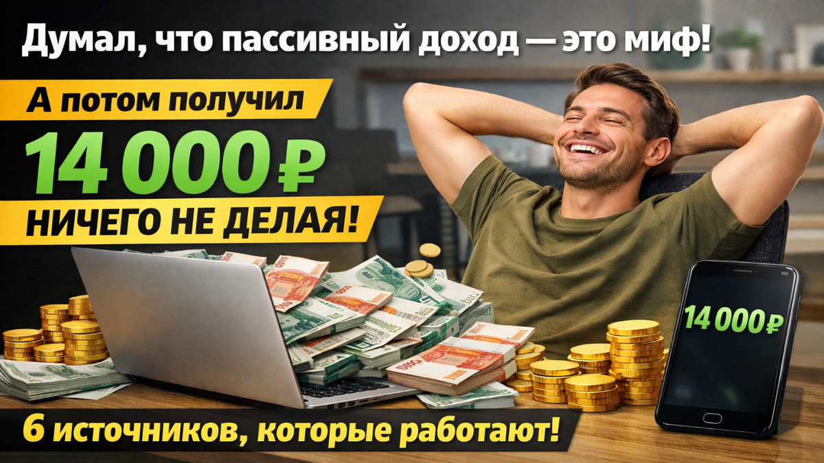 Два года назад я считал «пассивный доход» разводом для доверчивых. Блогеры обещают миллионы лёжа на диване, инфобизнесмены продают курсы за 50 000 ₽ с гарантией результата через месяц. Потом я разобрался как это работает на самом деле — без курсов и без волшебства. Сегодня каждый месяц на мои счета приходят деньги которые я не зарабатываю активно. Расскажу честно — какие источники реально работают для обычной семьи и с чего начать прямо сейчас.
