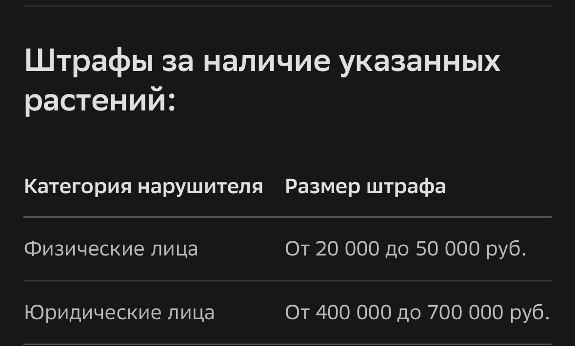 Опасные растения, за наличие которых предусмотрено наложение штрафа: