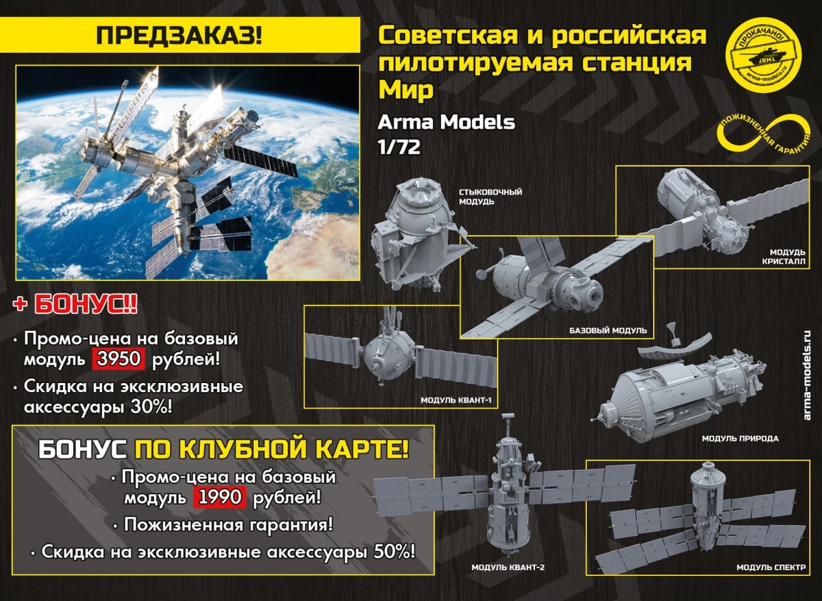 Arma Models открыли предзаказ на космическую станцию "Мир" в 1/72 масштабе